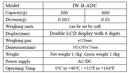 High precision A/D conversion with readability 1/60000;AC/DC power supply, with inside rechargeable 6V/1.3AH battery;Able to setup zero-tracking range;Able to setup Hi-Lo alarm function;Able to setup hold function;Able to setup counting function;Muti-range calibration;Able to setup print function, can add built-in clock;Standard RS232 communication interface with select-able baud rate and communication method
