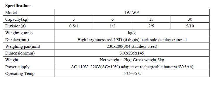 Balance and Scale (Model IW-WP)