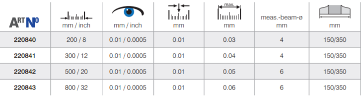 • incl. hardened measuring tips with M2.5 thread, exchangeable