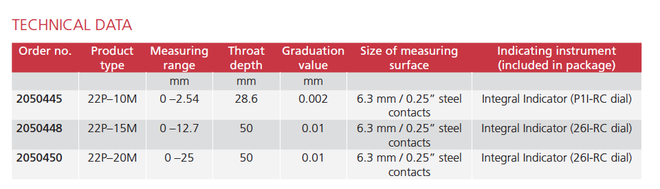 • Continuous reading dials with revolution counter for absolute measurement of thin materials, plastic films and small parts