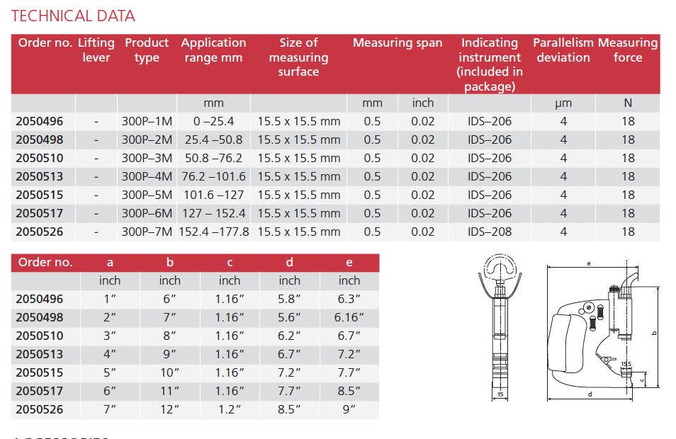 MaraMeter 300P– 1M / 300P– 2M / 300P– 3M / 300P– 4M / 300P– 5M / 300P– 6M | Indicating Snap Gage