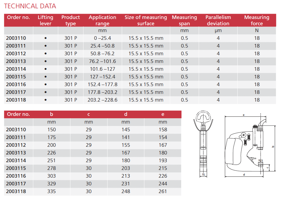 • All Series 300P snap gages are fully adjustable with positive position locking at any point within the rang