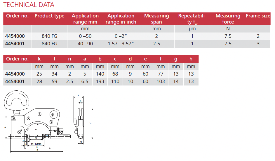 • Maximum wear resistance due to non-contact positioning in conjunction with carbide tipped measuring faces