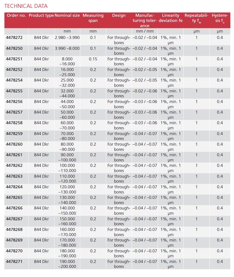 • Constant measuring force as a result of built-in spring, eliminating user influence