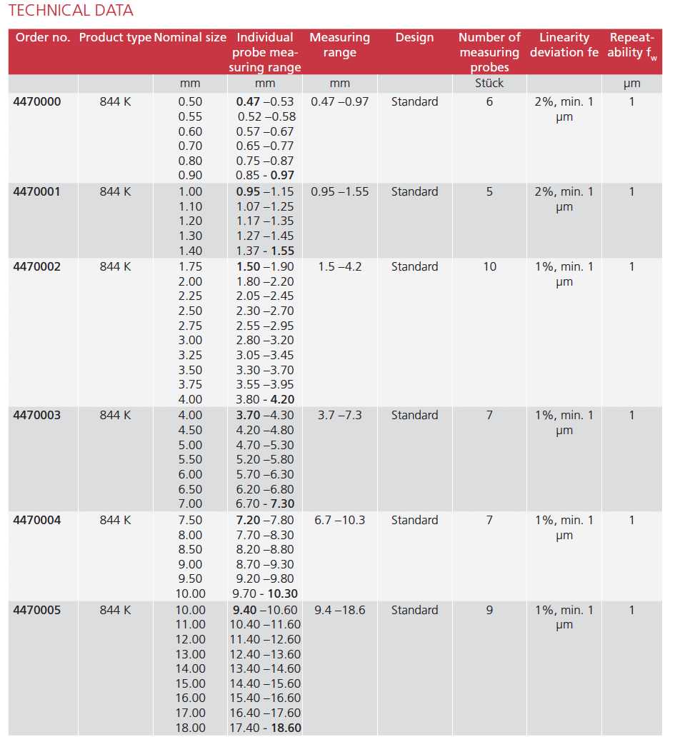• Constant measuring force as a result of built-in spring, eliminating user influence