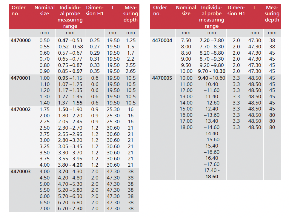 • Extensive modular system is composed of measuring probe, holder, depth extensions, Right angle attachments and depth stops