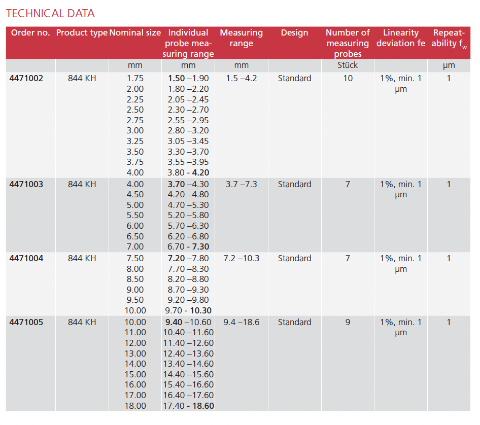 • Constant measuring force as a result of built-in spring, eliminating user influence