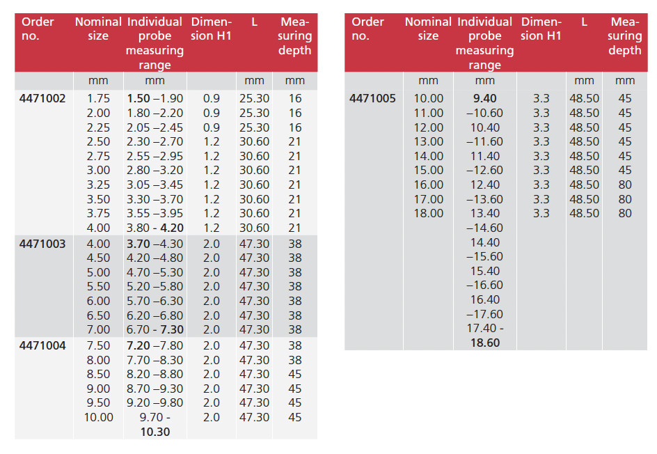 • Extensive modular system is composed of measuring probe, holder, depth extensions, Right angle attachments and depth stops