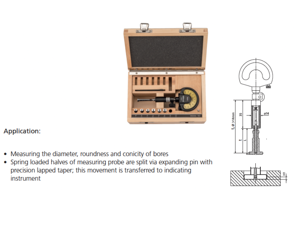 • Package contains: measuring holder, probe, expanding pin, wooden case, excludes indicator