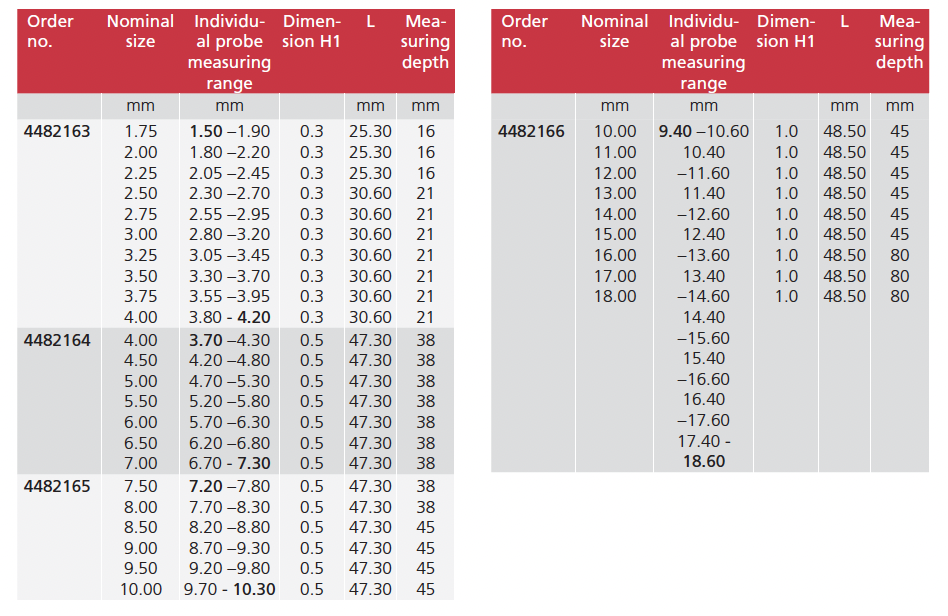 • Extensive modular system is composed of measuring probe, holder, depth extensions, Right angle attachments and depth stops