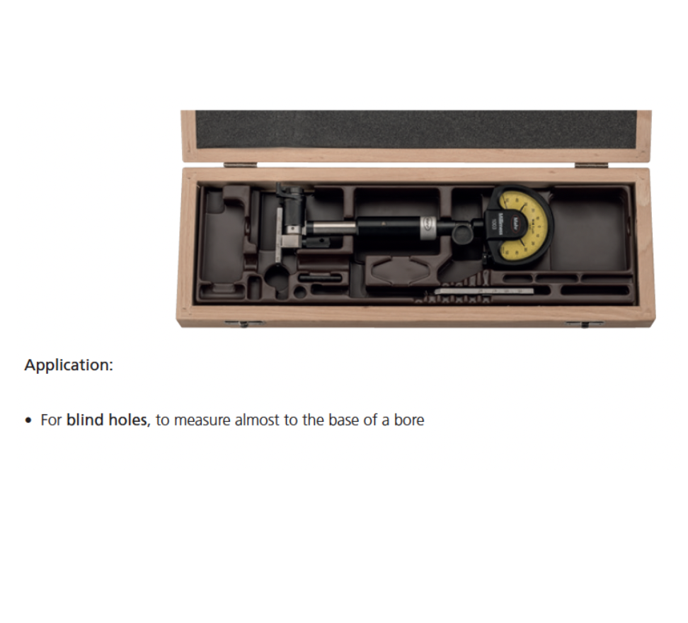 • Package contains: measuring holder, measuring head, anvil spindle, wooden case, excludes indicator