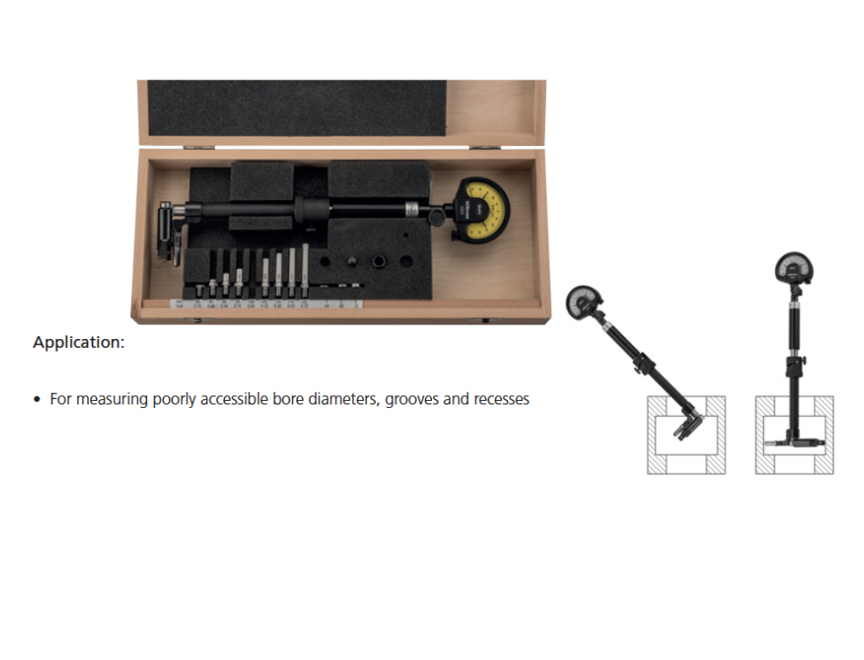 • Package contains: measuring holder, measuring head, anvil spindle, wooden case, excludes indicator