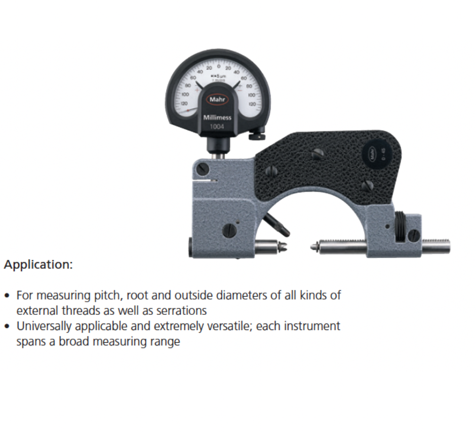 • Measuring spindle is mounted in long guideway with lever controlled retraction