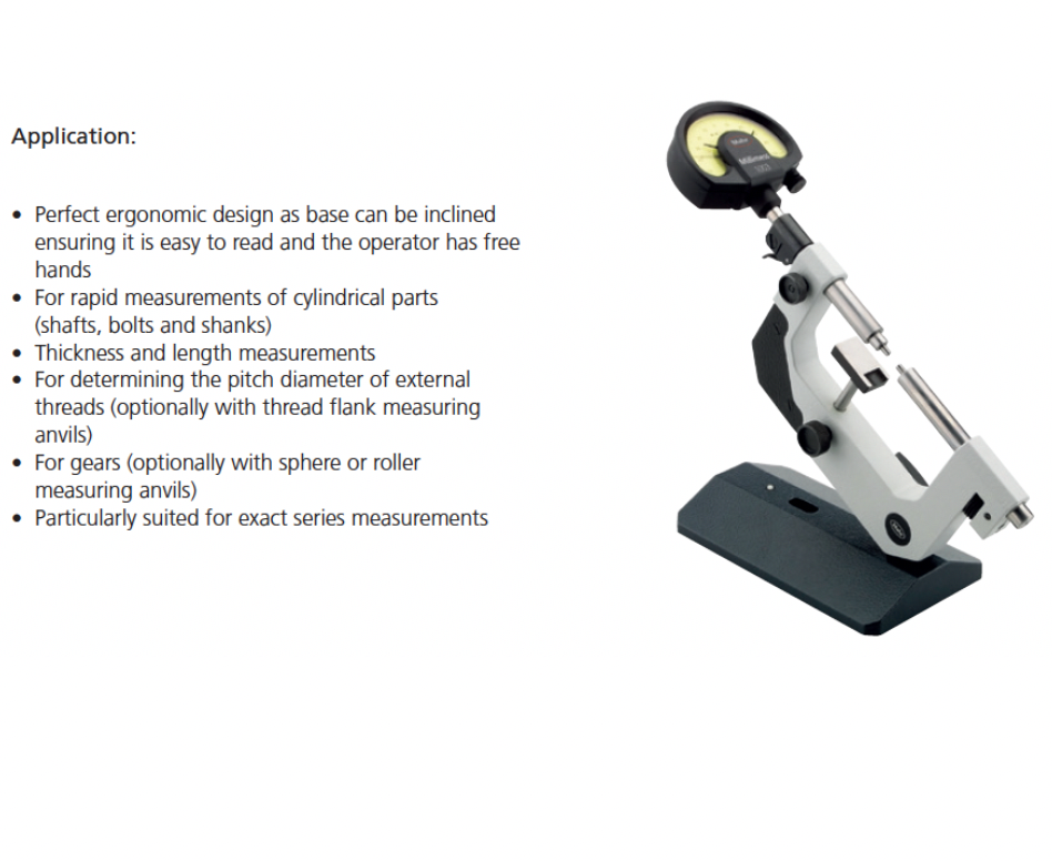 • Measuring spindle and anvil are made of hardened stainless steel with mounting bore for insertion of interchangeable anvils