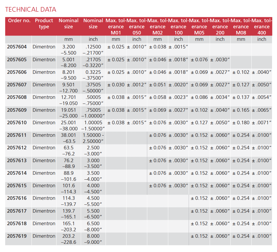 • High chrome content; hardened stainless steel bodies ground precisely for specified size measurement