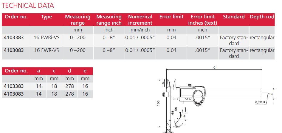MarCal 16 EWRi-VS/ 16 EWR -VS | Digital Caliper for Special Applications