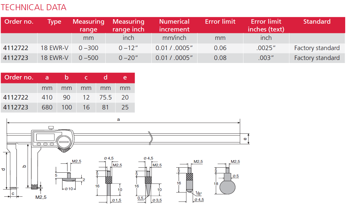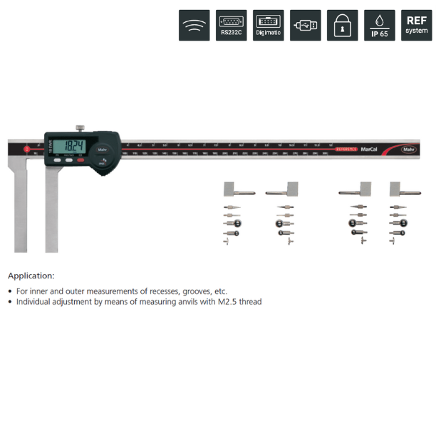 • Thread M2.5 measuring jaws to accommodate measuring anvils for internal and external measurements