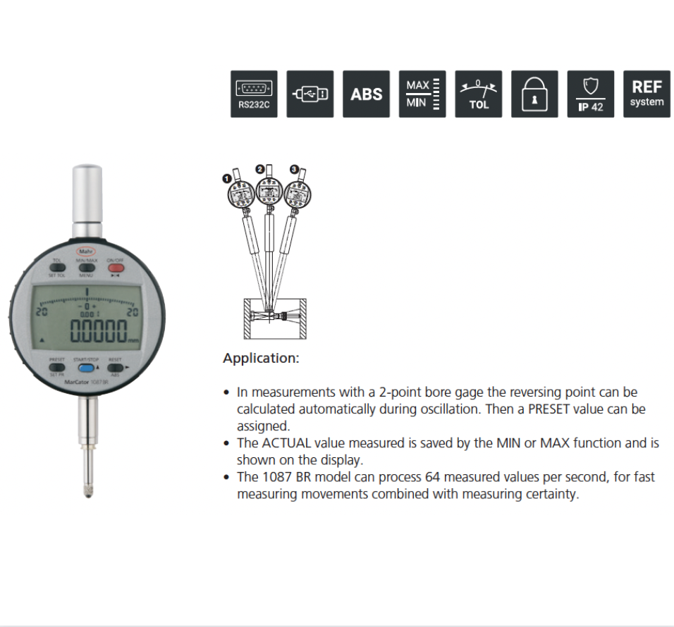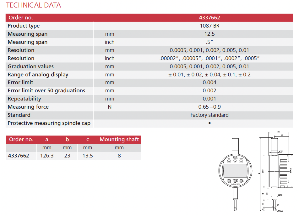 • Mounting shank and measuring spindle are both made of hardened stainless steel
