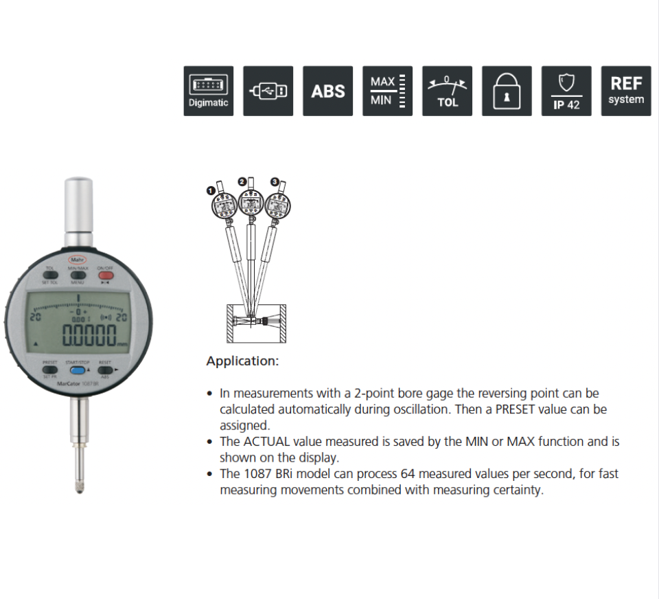 • Clamping shaft and measuring pin made of hardened stainless steel