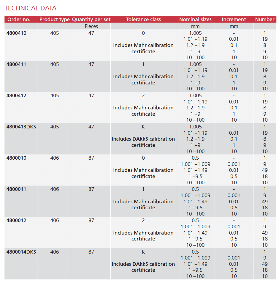 MarGage 405 / 406 | Rectangular Gage Block Set made of Steel