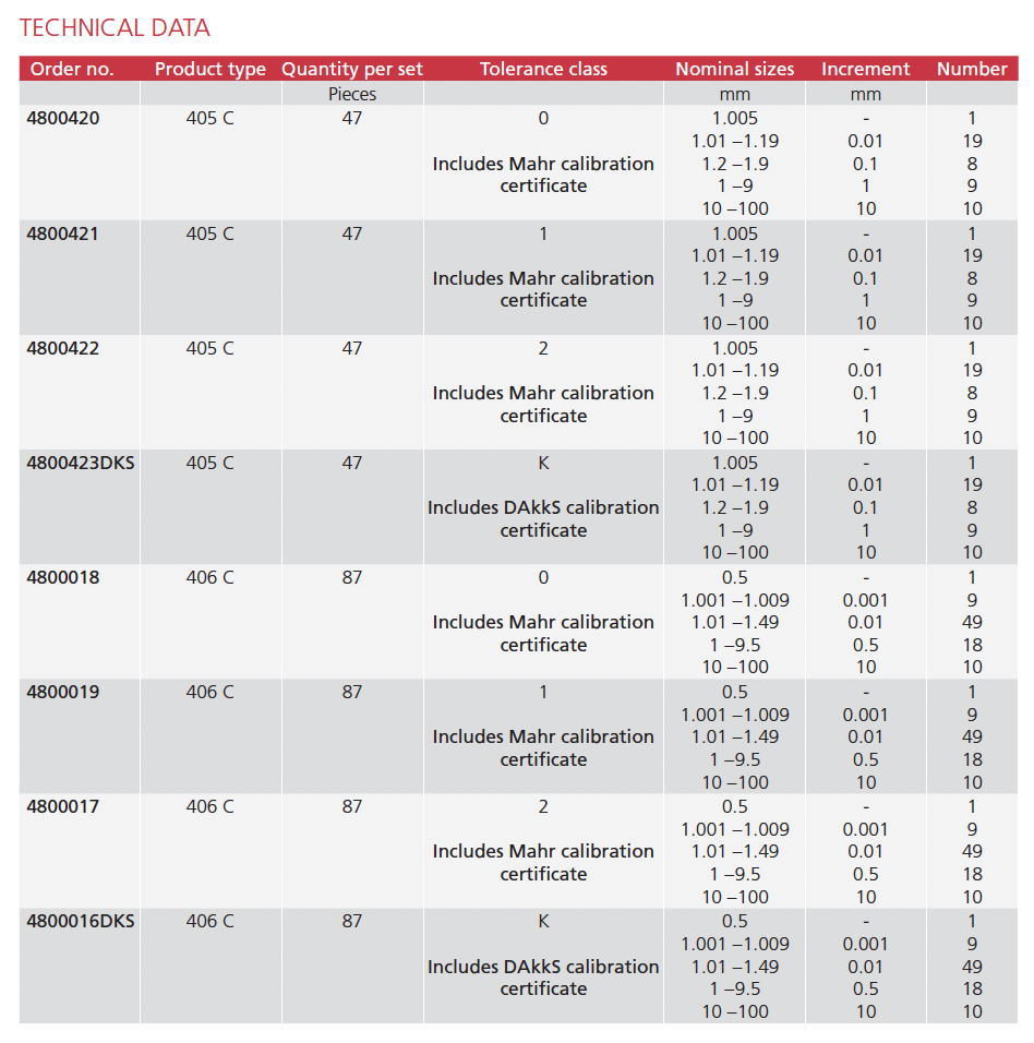 • Package contains: wooden case with clear labeling strips, Mahr calibration certificate