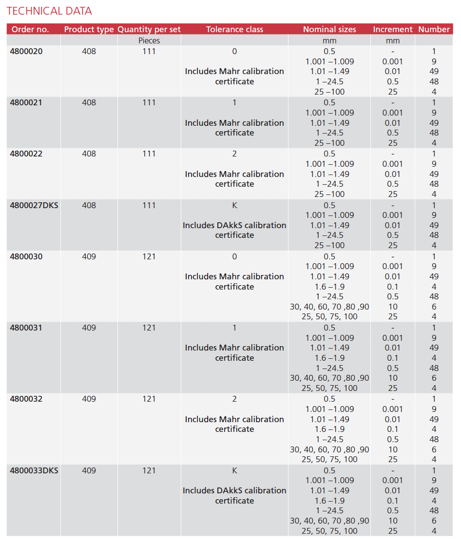 • Package contains: wooden case with clear labelling strips, Mahr calibration certificate