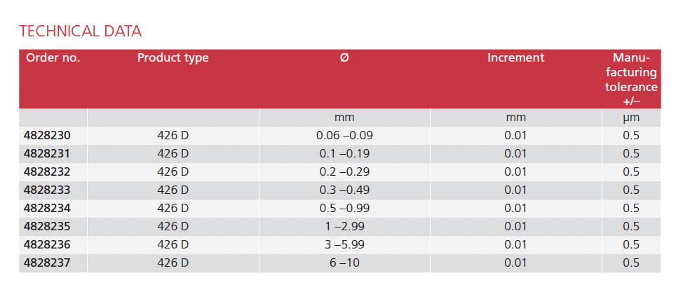 • Gage is made of wear-resistant, hardened, multi-aged, ground and lapped steel