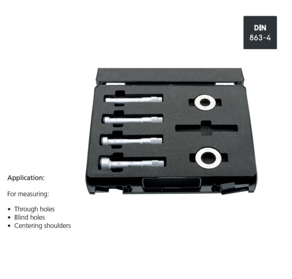 • Package contains: instruction manual, setting rings, key for replacing measuring heads (from 30 mm), allen key, case