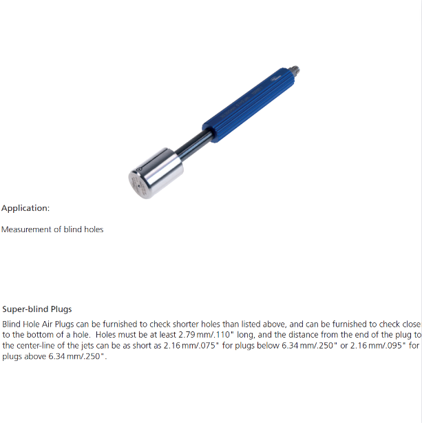 • Federal Air Plugs have large clearance (see table below), allowing easy entrance into the hole being measured and a greater measuring range.