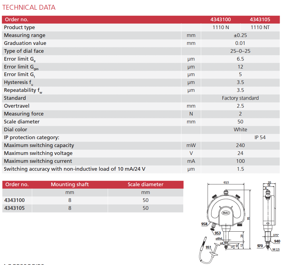 • Mounting shank and measuring spindle are both made of hardened stainless steel