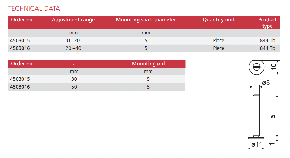 • With cylindrical mounting shaft to attach into mounting attachments 844 Tma, 844 Tmi, 844 Tms