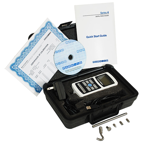 Series 4 digital force gauges are designed for tension and compression force testing in numerous applications across virtually every industry, with capacities from 0.12 lb to 500 lb (0.5 N to 2500 N). The gauges feature a sampling rate of 3,000 Hz, producing accurate results under a wide range of test conditions. Accuracy is ±0.2% of full scale, and resolution is 1/2000. A large, backlit graphics LCD displays large, legible characters, while the simple menu navigation allows for quick access to the gauges’ many features and configurable parameters. Data can be transferred to a PC or other data collector via USB, RS-232, Mitutoyo (Digimatic), or analog outputs.