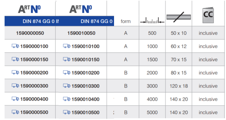 • for grade 0 and 1 from 2000 mm with hand slots, grade 2 from up 2500 mm